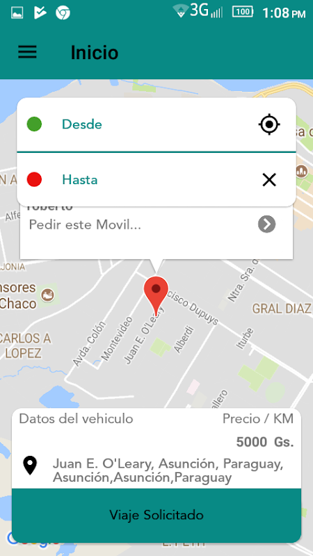 -Una vez mencionado esos dos puntos toca el boton Solicitar viaje!