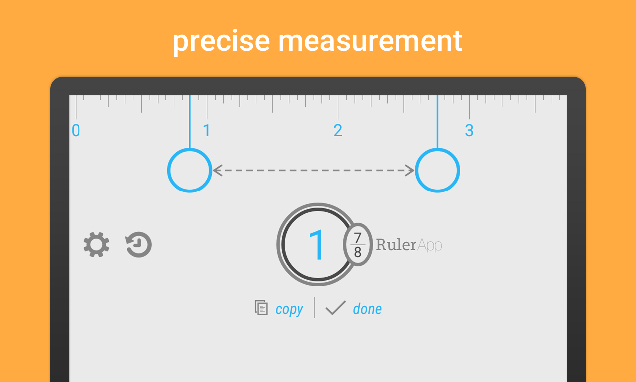 Ruler app for your phone and tablet. Measure everything with a beautiful on-screen ruler. Choose between inches and centimeters. Tap the screen to start using the best multi-touch measuring system and find the size of all curious objects around you. And all this for free.