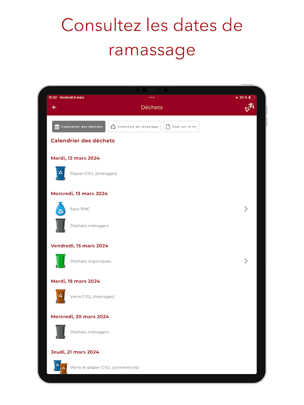 - Access waste collection dates and receive a notification to remind you to take out the trash
