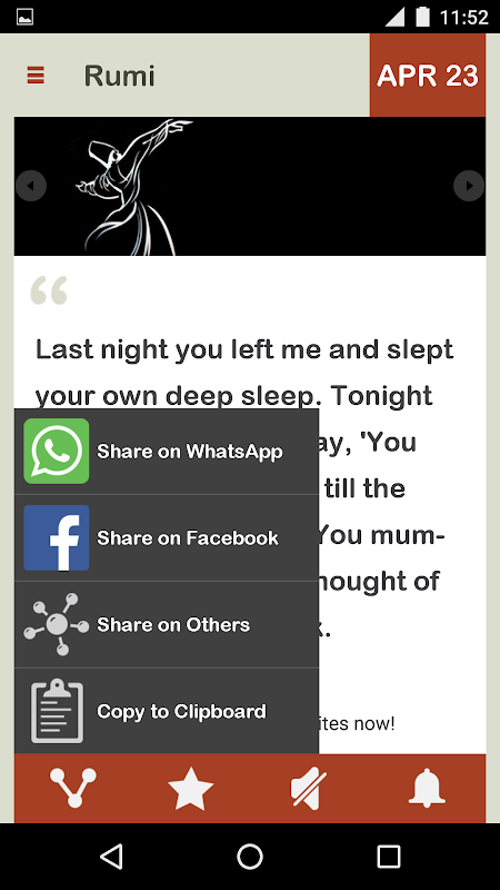 Rumi's wisdom is brought to you in the form of a Mobile App. Wake up every day, with Eternal Sufi wisdom, starting today.