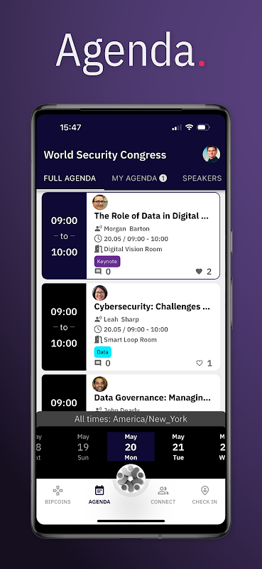 As an attendee, you'll always know what's happening next. From browsing the event agenda, marking favorite sessions, checking out speaker profiles and session details, to participating in session chats, you'll be plugged in to all event activities. Plus, it's fun! Collect coins by attending sessions and visiting sponsor booths, then trade them for exciting merchandise and giveaways.
