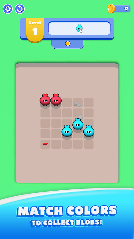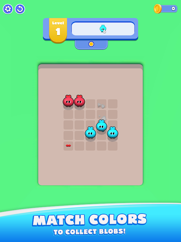 The twist is that players must collect a target amount of specific colors by matching lines, adding an extra layer of strategy. As new blobs appear after each move, the challenge is to keep the board clear while meeting the color collection goals. If the grid fills up, the game is over.
