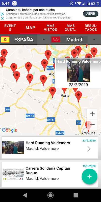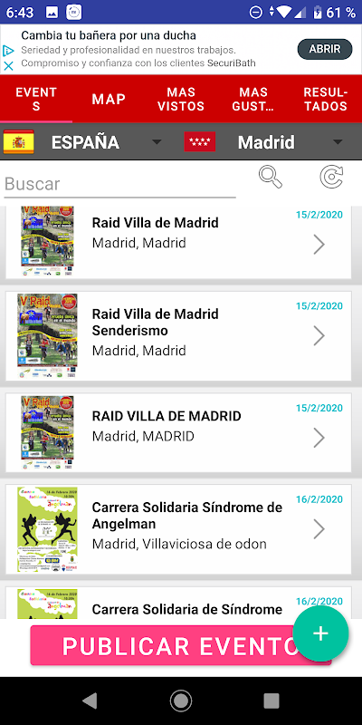 Finder of sporting events (marches, races, duathlon, triathlon, btt, ...) in all the Spanish territory.