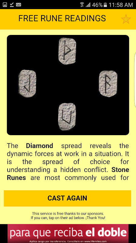 Have fun with unlimited Rune readings or "castings" but be aware that these readings can be enigmatic and intriguing, which leaves interpretation up to you and your intuition to define the answer.