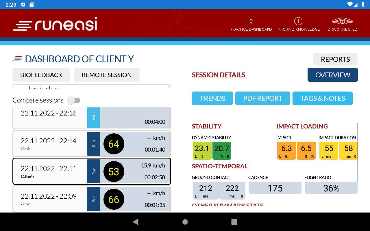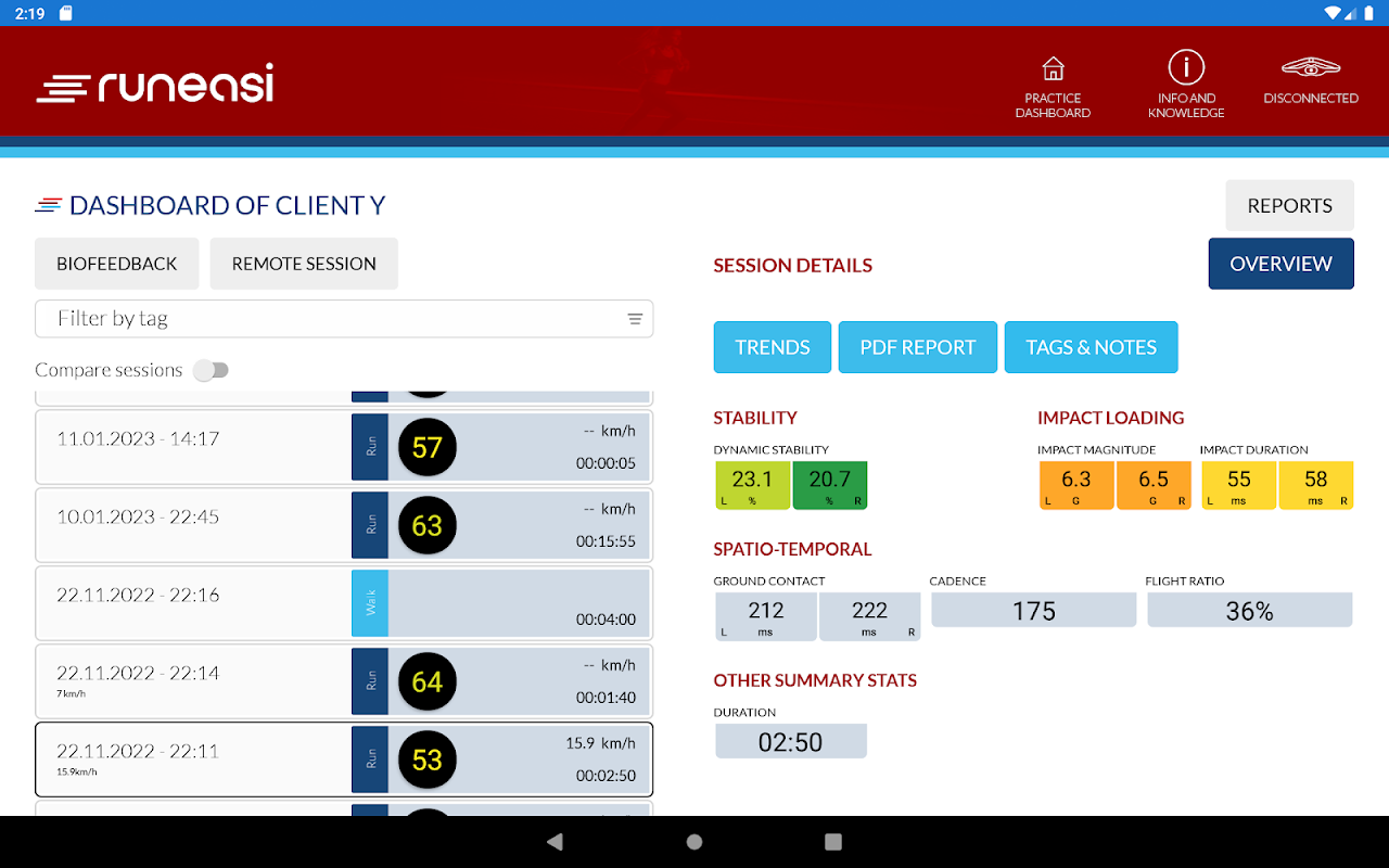The global score consolidates three key crucial components: impact loading, dynamic stability & symmetry. Each component plays a vital role in injury-risk factors and running efficiency parameters (Schütte et al. 2018; Pla et al. 2021; Melo et al. 2020; Johnson et al. 2020). With minimal but valuable information, you instantly get a biomechanical blueprint of your athlete/patient.