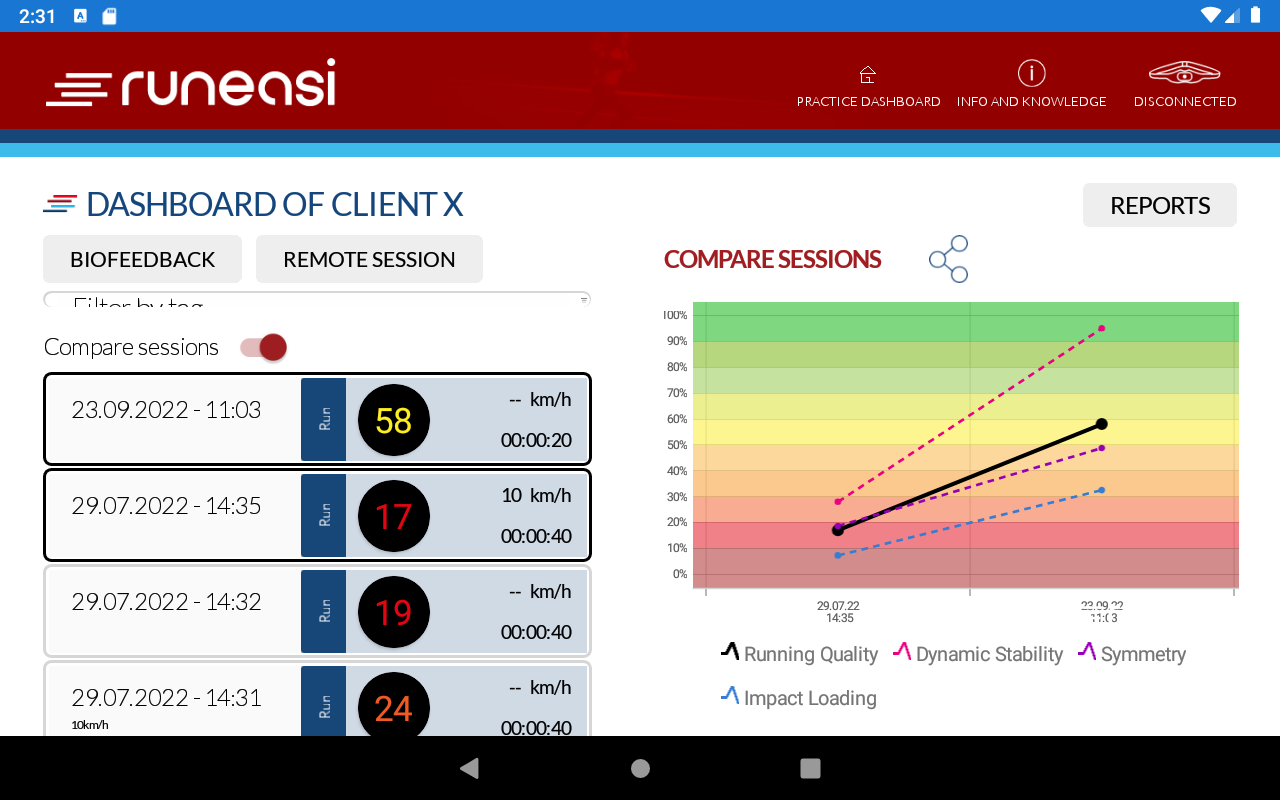 Screen your athletes in less than 60 seconds to obtain their running quality profile, identify their weakest links and track their progress, or use our gait retraining module to test out in real time which running cue works best for each individual.