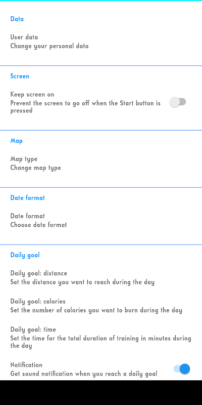 The activity tracker motivates you to beat your own personal records. You can beat the following records: duration, distance, speed and calories.