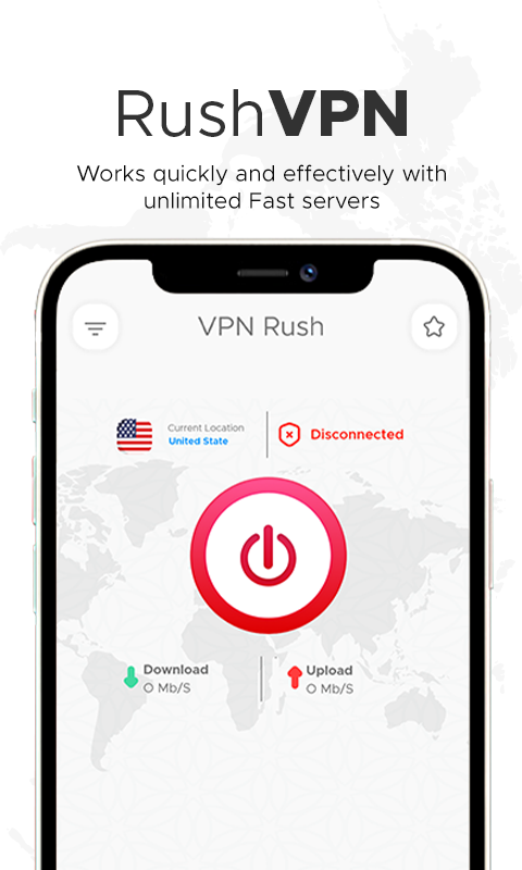Android Fast VPN Proxy, Secure and Unlimited, One Tap to Connect To Rush VPN.