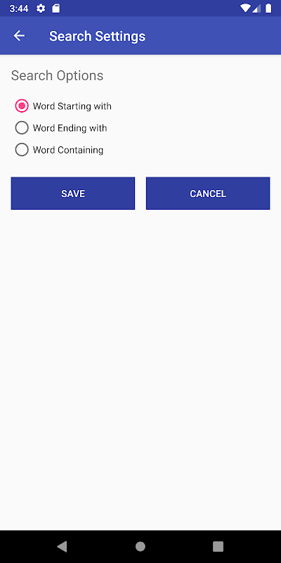 - "Search Options" feature that help to search the word "Starting" with searching word or "Ending" with searching word or "Containing" the searching word.