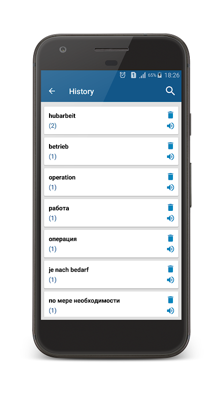 Russian German Dictionary is Offline and Free. Search new vocabulary does not require an Internet connection.