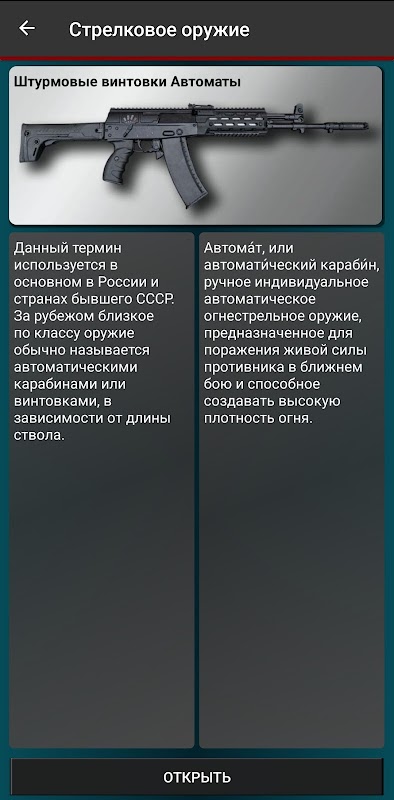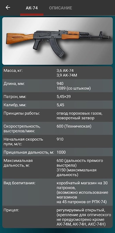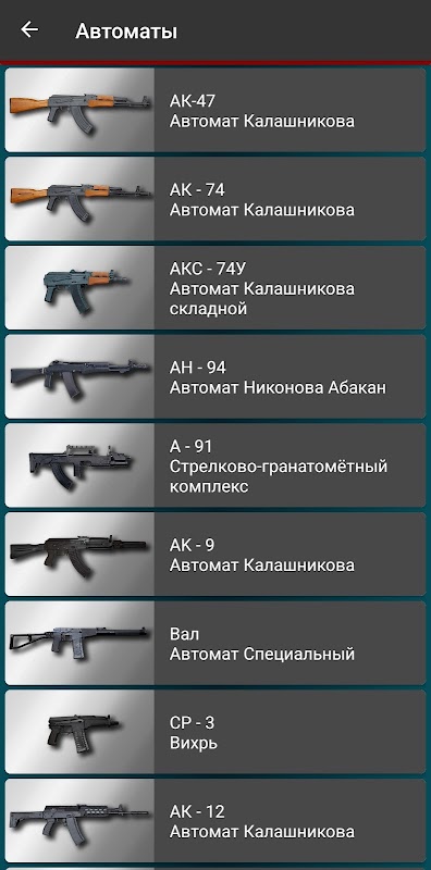 Russian weapons is an application on the weapons of the Russian Federation. At the moment, the application contains various types of small arms, aircraft, armored vehicles, rocket weapons.