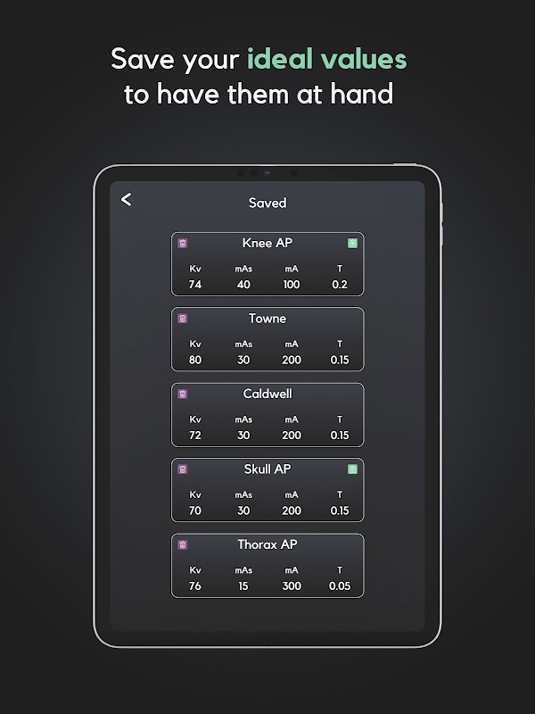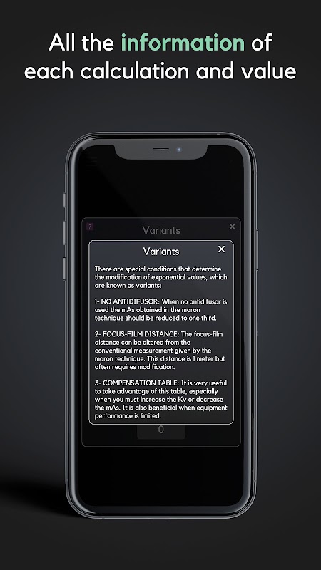 With "RX - Values Calculator" you can acquire the ideal exponential values for your radiographic studies.