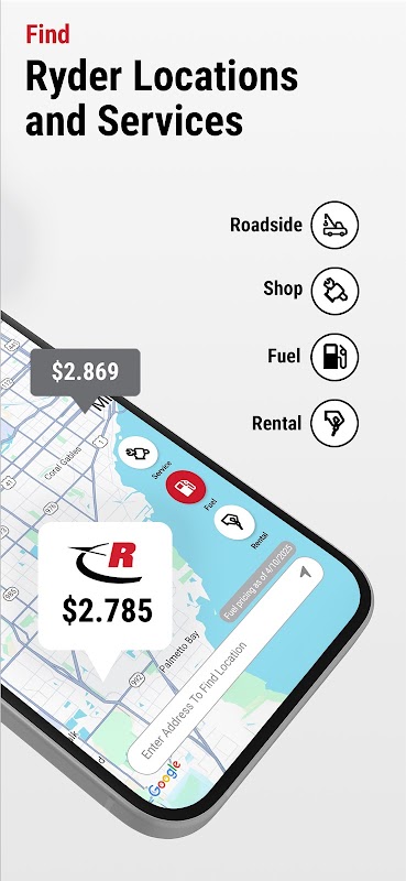 • Find Ryder Locations: Locate shops, fueling and rental locations. Access on-site service information like phone numbers, hours of operation and more.