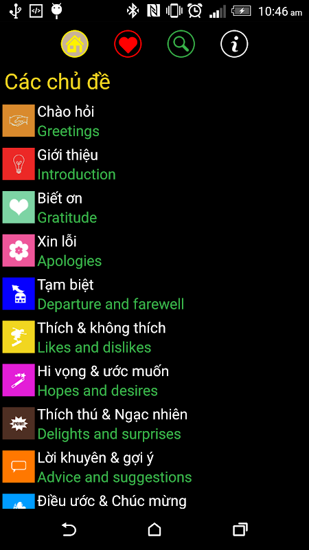 "Sổ Tay Đàm Thoại Anh-Việt" is an English-Vietnamese phrasebook – that helps Vietnamese people to learn English faster and easier. This app also helps Vietnamese to travel the world with limited English skill.