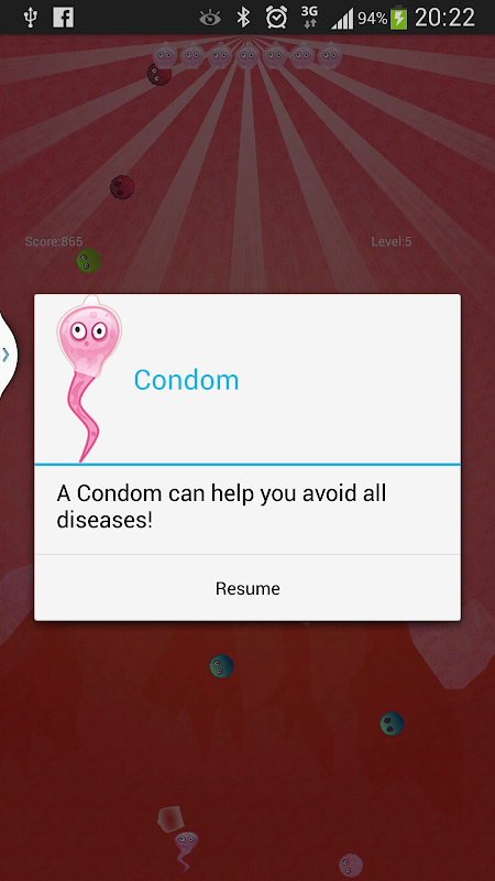 In the game you are lonely spermatozoon which has to avoid diseases as it gets harder and harder through the neverending journey.