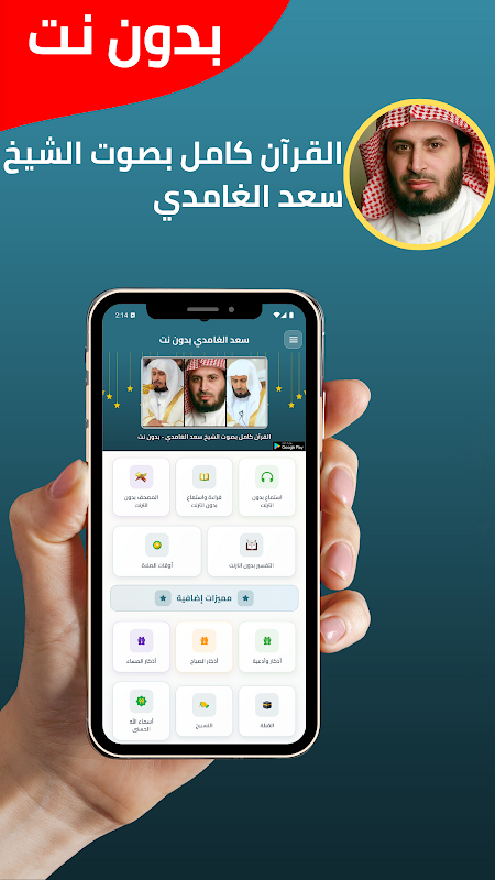 Definition of the application of the Noble Qur’an with the voice of the reciter, Sheikh Saad Al-Ghamdi, without the Internet