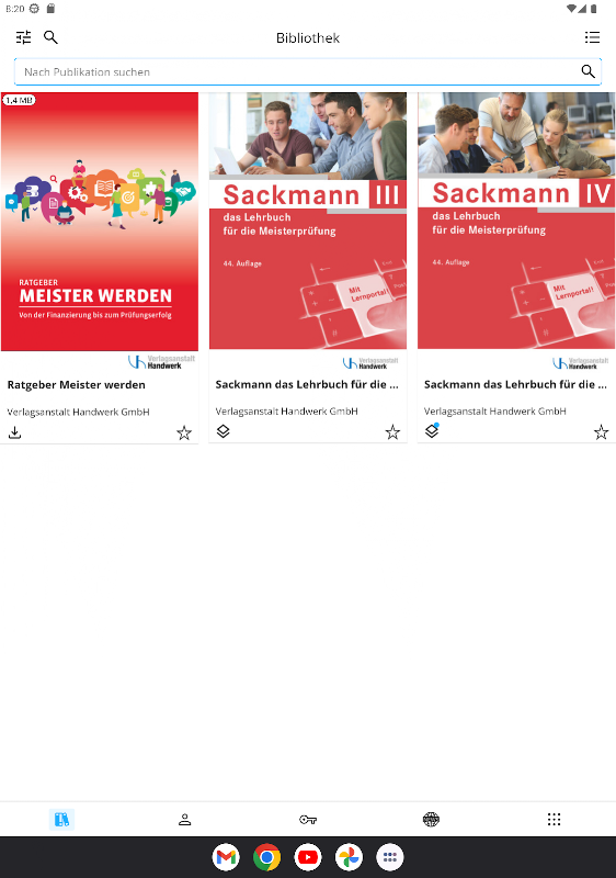 In the Sackmann app you can open the textbook “Sackmann – Preparation for the master’s examination” as an e-book with added value.