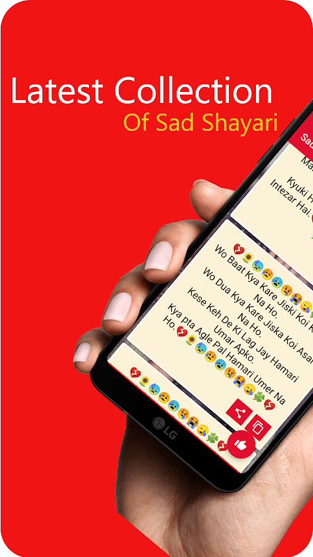Sad Shayari app is user-friendly and easy to operate. Share your feelings and express your sadness through status with