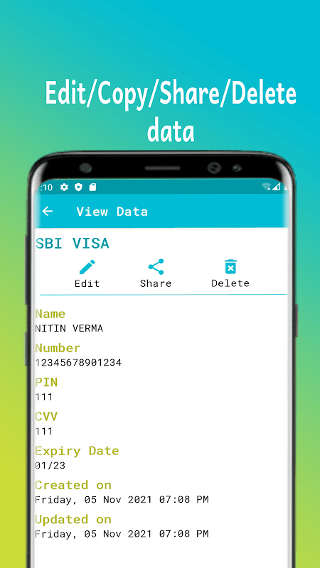 2. This app doesn't require any special permission, not even INTERNET. so you can save anything is this app and be assured that it cannot leave your device.