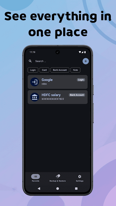 * Smart Organization: Categorize different types of data (e.g., login credentials, financial info, secure notes) for effortless navigation within your integrated password manager and data organizer.