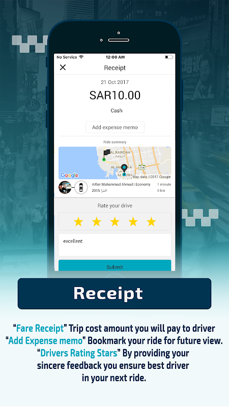 Review the driver: Rate the driver at the end of your trip and leave a comment if you want to. Add him to your favorite drivers to be among the first to receive your future order or block him completely if you do not wish to travel with him ever again.