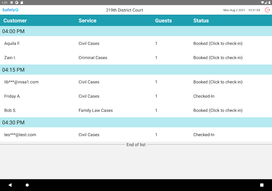 SafelyQ TV displays all appointments designed to fit a TV display. Set it up at your business so customers can know where they place in the queue. Also download it on a tablet and let your customers check-in right at the business. App required SafelyQ admin account. For more information on setup, please contact us at [email protected]