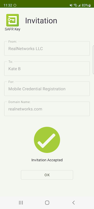 Mobile credential app for SAFR SCAN