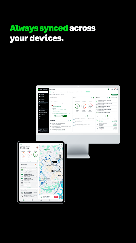 Calls, emails, geolocated visits, video calls, and WhatsApp. Everything is instantly recorded. Access key information wherever you are and achieve your goals.