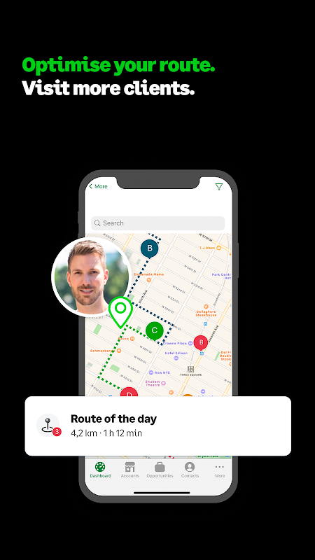 - Sales route: Sync your calendar with the app and plan the ideal sales route for each day.