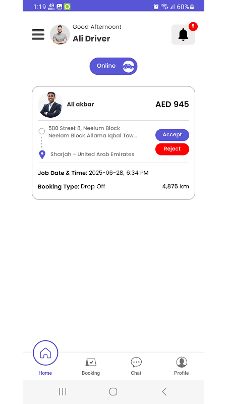 Sahar Driver App helps professional drivers manage their bookings efficiently and stay connected with customers and admin in real time.