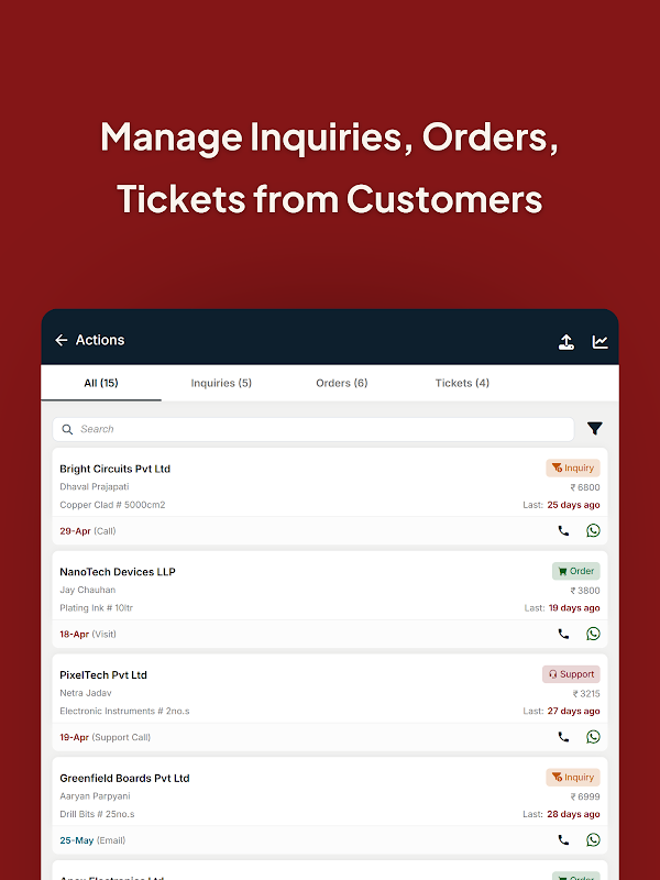 These features are even enabled directly for the end-customers of SahiCRM users through the free Website / Webstore auto-built to submit and get status of inquiries, orders, and tickets.