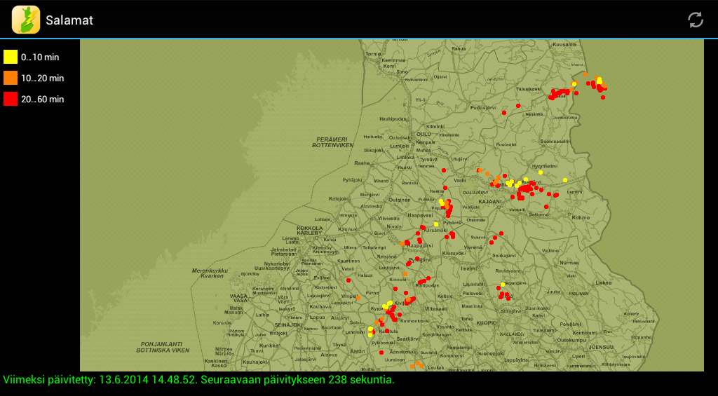 Note. The application is not published or maintained by the Finnish Meteorological Institute. The application uses the open interface of the Finnish Meteorological Institute.