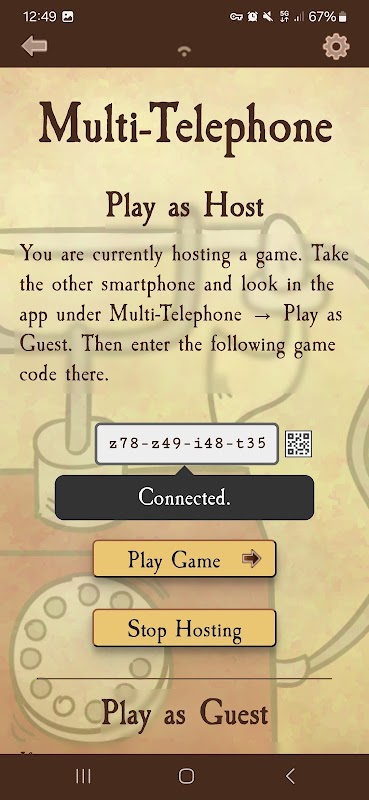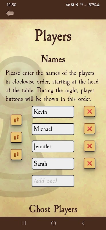 This app takes on the role of moderator, so that all human participants can be players. It also allows to connect to the game with multiple smartphones, so that players don't have to reach across the table to take a vote.