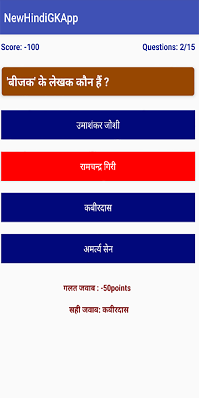 There is no time limit. So take as much time as you can and increase your general knowledge skills with this New general knowledge game app in Hindi.