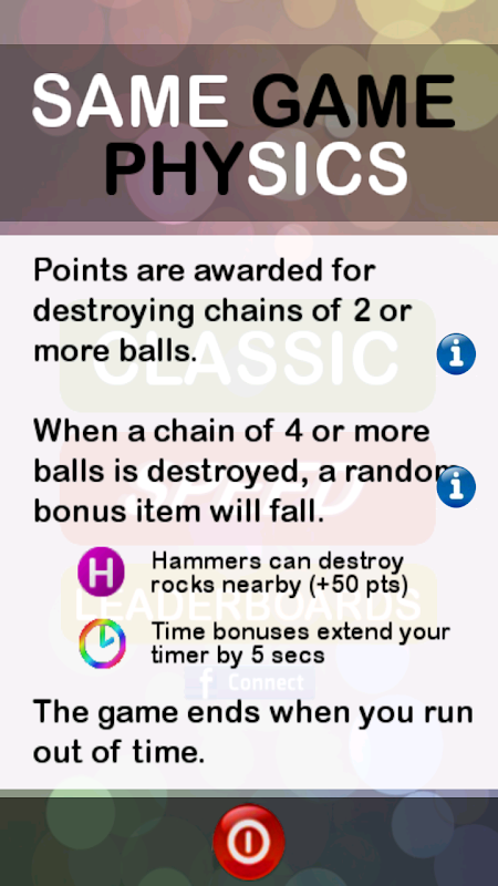 Same Game Physics is a game for all ages and provides endless hours of fun. Play a quick game in SPEED MODE while waiting for someone or take your time to plan your moves in CLASSIC MODE.