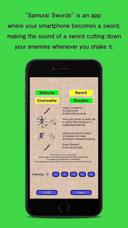 "Samurai Swords" is an app where your smartphone becomes a sword, making the sound of a sword cutting down your enemies whenever you shake it.