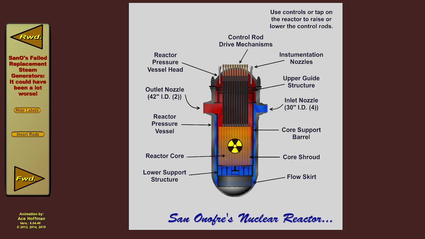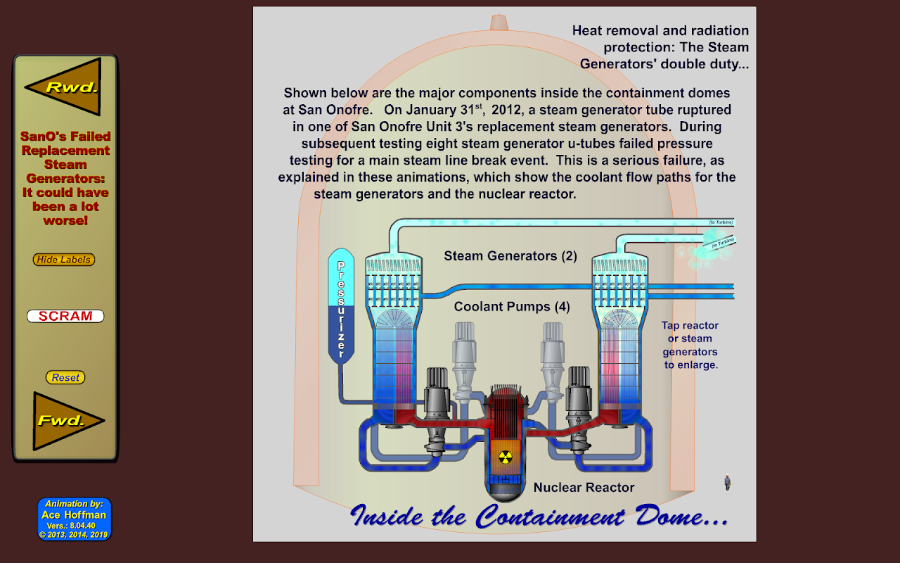 These animations are based on actual documentation of the San Onofre reactor, now closed and approaching decommissioning as of this writing (2019).