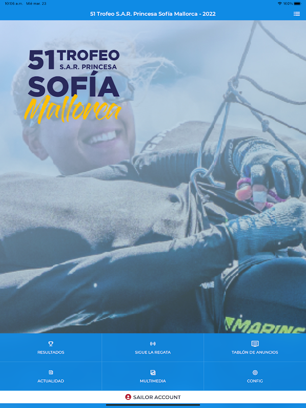 With this App, live the Trofeo S.A.R. Princesa Sofía wherever you may be as you had never imagined! Trofeo S.A.R. Princesa Sofía, Sail IT, Race IT, Live IT.