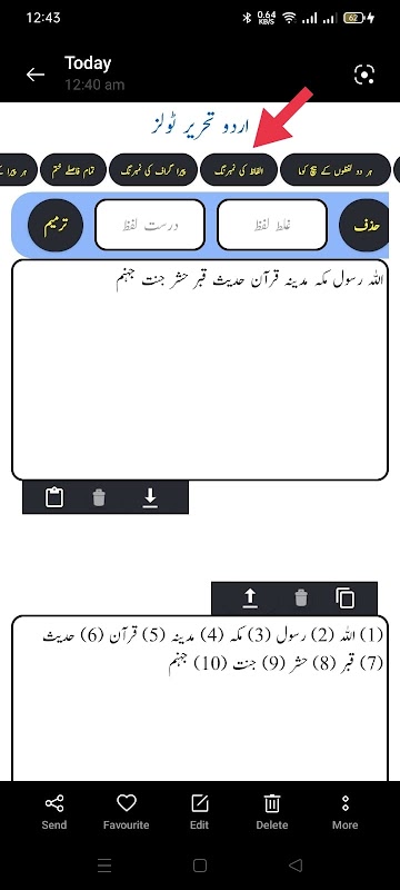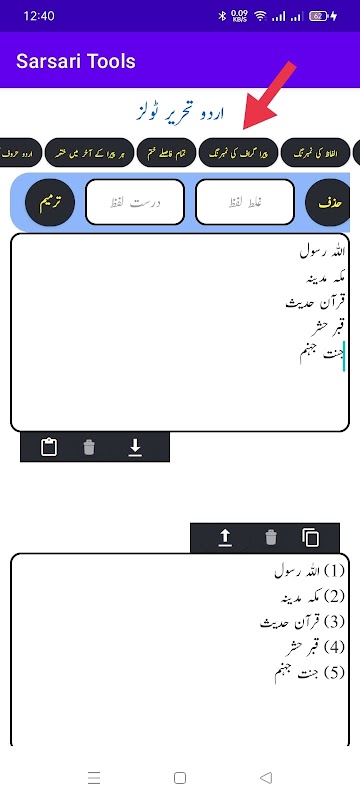 اس ایپ کے ذریعے آپ اردو تحریر پر مختلف ٹولز کے ذریعے اپنے مطلوبہ رد و بدل کرسکتے ہیں، مثلا صرف ایک بٹن دبا کر اپنی تحریر کی فاش غلطیاں درست کرسکتے ہیں، یہ ایپ آپ کی تحریر میں املا کی غلطیاں بھی بہت حد تک درست کردیتی ہے، اس میں خود کار طریقے سے بھی آپ اپنی تحریر کو نکھار سکتے ہیں، علاوہ ازیں اس ایپ میں تحریر کے حروف یا الفاظ کی تعداد معلوم کی جاسکتی ہے، عربی حروف کو اردو سے اور اردو حروف کو عربی کی بورڈ والے حروف سے بدلا جاسکتا ہے ، ہر لفظ کے شروع میں نمبر لگاسکتے ہیں، اضافی فاصلے ختم کرسکتے ہیں۔