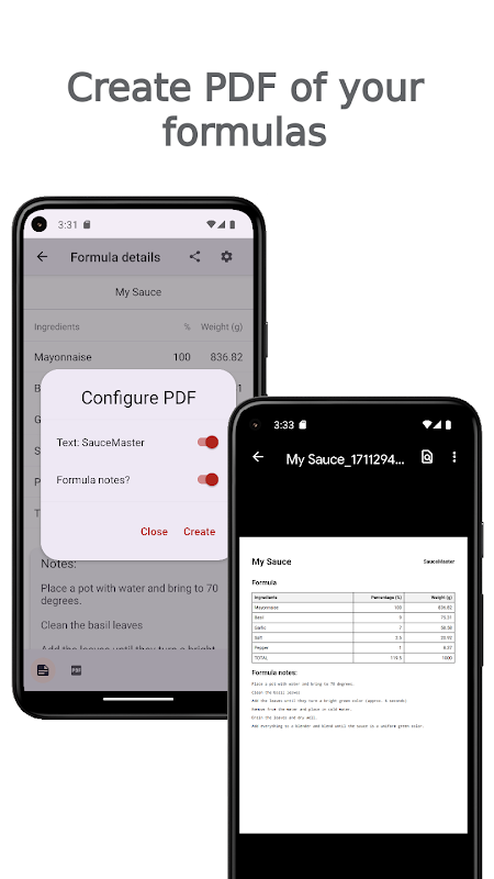 The intention of SauceMaster is to facilitate the task of sizing sauces, dressings and dips by percentage, ensuring consistent results in recipes of any size safely, reliably and with a friendly interface.
