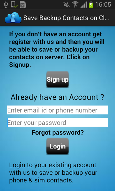 Save Backup Contacts on Cloud will help to backup your contacts on server. If your sim or mobile is lost even then, you will be able to retrieve your contacts without any problem.