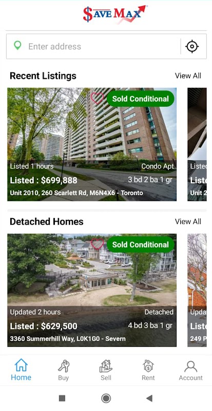Save Max Real Estate app provides the MLS listings through TRREB.