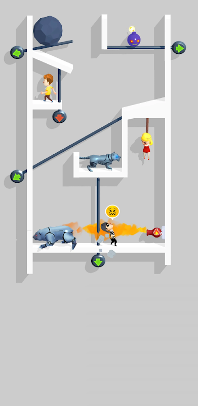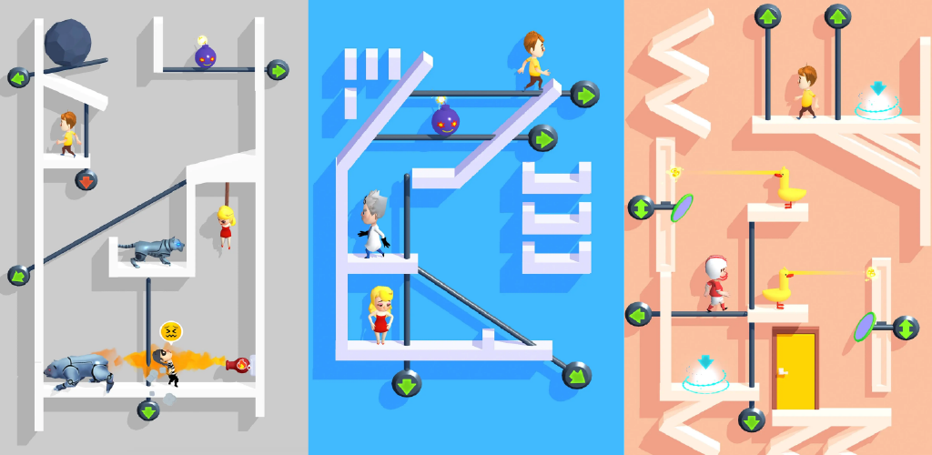 - Pull the pin bars in the right order to defeat the bad guys and monsters, rescue your friend and collect money. Just one small mistake can make the little boy and her pet lose their life.