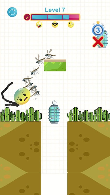 Be careful! The flies came out to wake it up. The only way to save the sleepy emoji is to draw a line to stop those flies. Flies aren't the only thing that can harm him. The sleepy emoji also must overcome lava, water, spikes and acids to reach safety. Help him please!