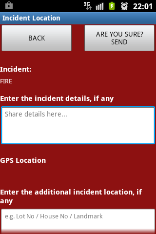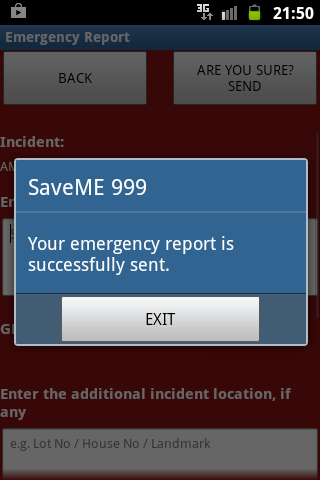 User can activate the application by pressing the ‘SaveME 999’ icon on the smart phone. The GPS address and the sender’s details such as name, telephone number, type of emergency and location will be transmitted automatically to MERS 999 Response Center(RC). Additional information about the incident detail and location detail can be added in the message. This information will assist the emergency agencies to send the help fast and accurate. SaveME 999 will provide distinctive benefits for Malaysian with speech and hearing impaired by providing nationwide coverage catering all types of emergencies.
