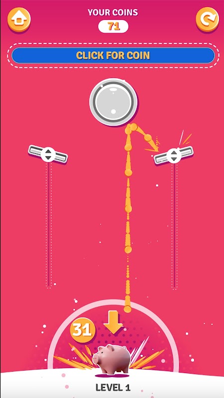 This is a game where you must manipulate platforms to determine the optimal path for the coin's flight, assisting the pig in collecting as many coins as possible.