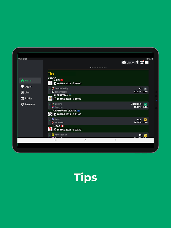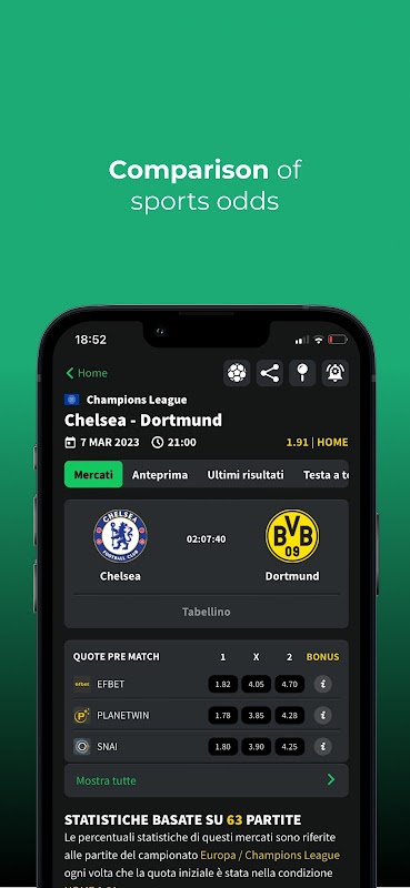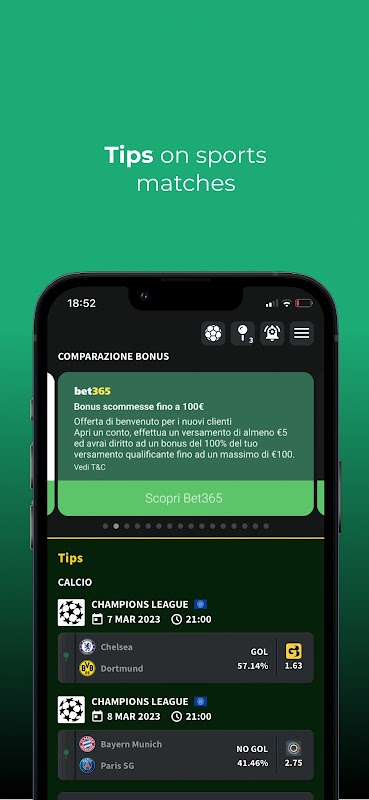• Match Analysis, a powerful algorithm that instantly analyzes over 70 million data points collected in the Sbotips database and indicates the most likely markets of the week