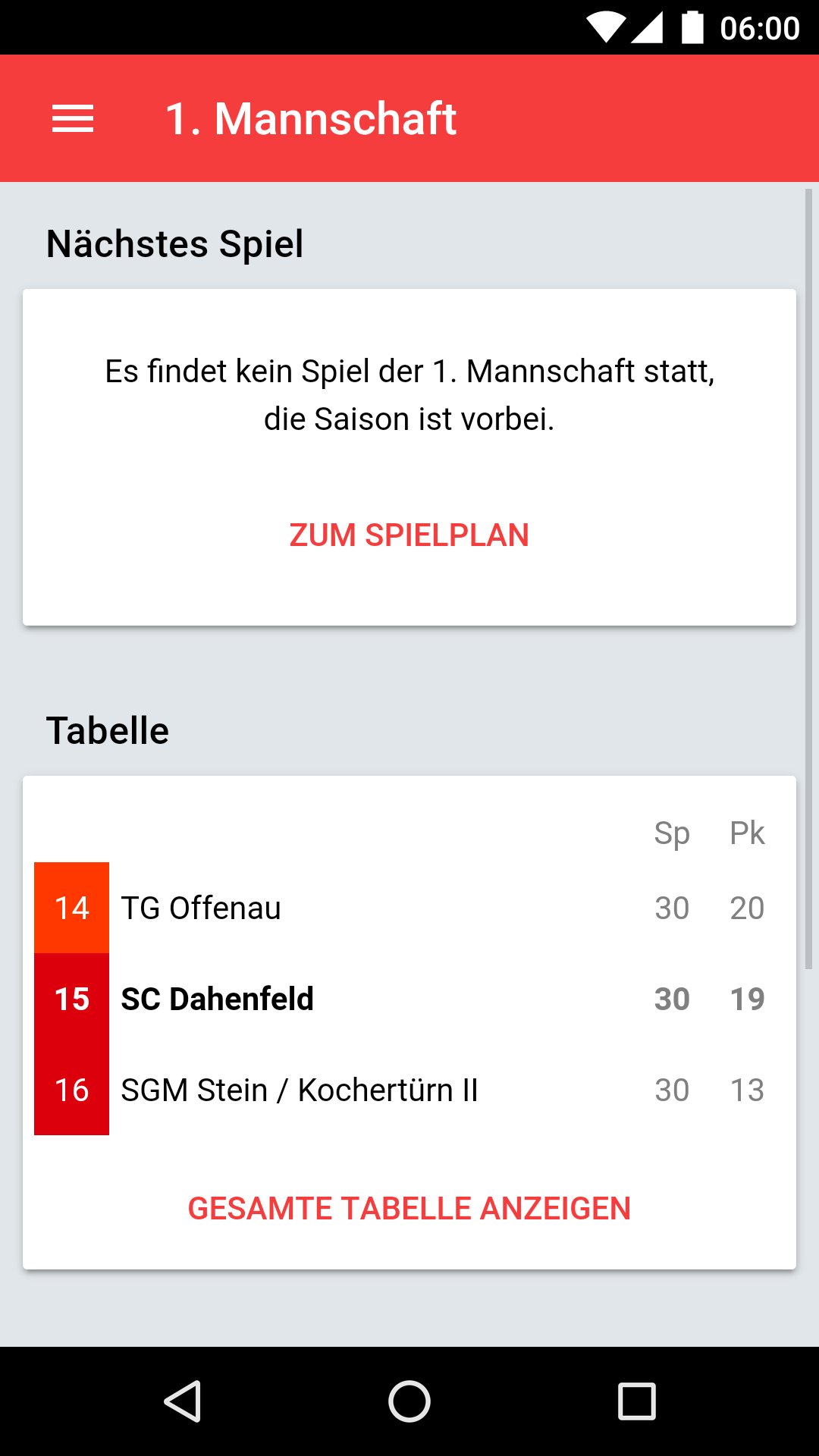 - Vereinsspielplan mit anstehenden Spielen des SC Dahenfeld