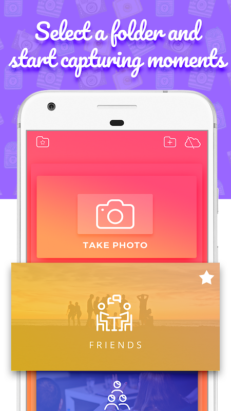 You can now create separate folders for your friends, family, and events with some exciting icons. There is also an option of default folder where your random pictures and selfies are saved. This will let you save all your selfies, pictures, and memories in different respective folders. You can later access your special day memories stored in different folders.
