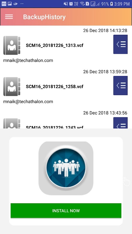 3 .Take Contact backup , Email it ,your backup is saved in Backup History .